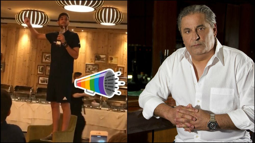 Ο Σπύρος Ρισβάνης ανέβηκε σε καρέκλα του εστιατορίου που έτρωγε η ομάδα του Ολυμπιακού, πήρε ένα μπουκάλι το οποίο έκανε... μικρόφωνο και άρχισε να τραγουδά Ζαφείρη Μελά (VIDEO)!