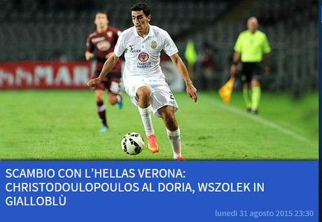 Ο Λάζαρος Χριστοδουλόπουλος έχει φτιάξει καλό όνομα στην Ιταλία και γι’ αυτό κάνει ένα βήμα τη φορά. Λίγο πριν εκπνεύσει η μεταγραφική περίοδιος ο Θεσσαλονικιός μεσοεπιθετικός ανακοινώθηκε από τη Σαμπντόρια, η οποία για χάρη του έστειλε στη Βερόνα τον Πολωνό εξτρέμ Πάβελ Βτζόλεκ.