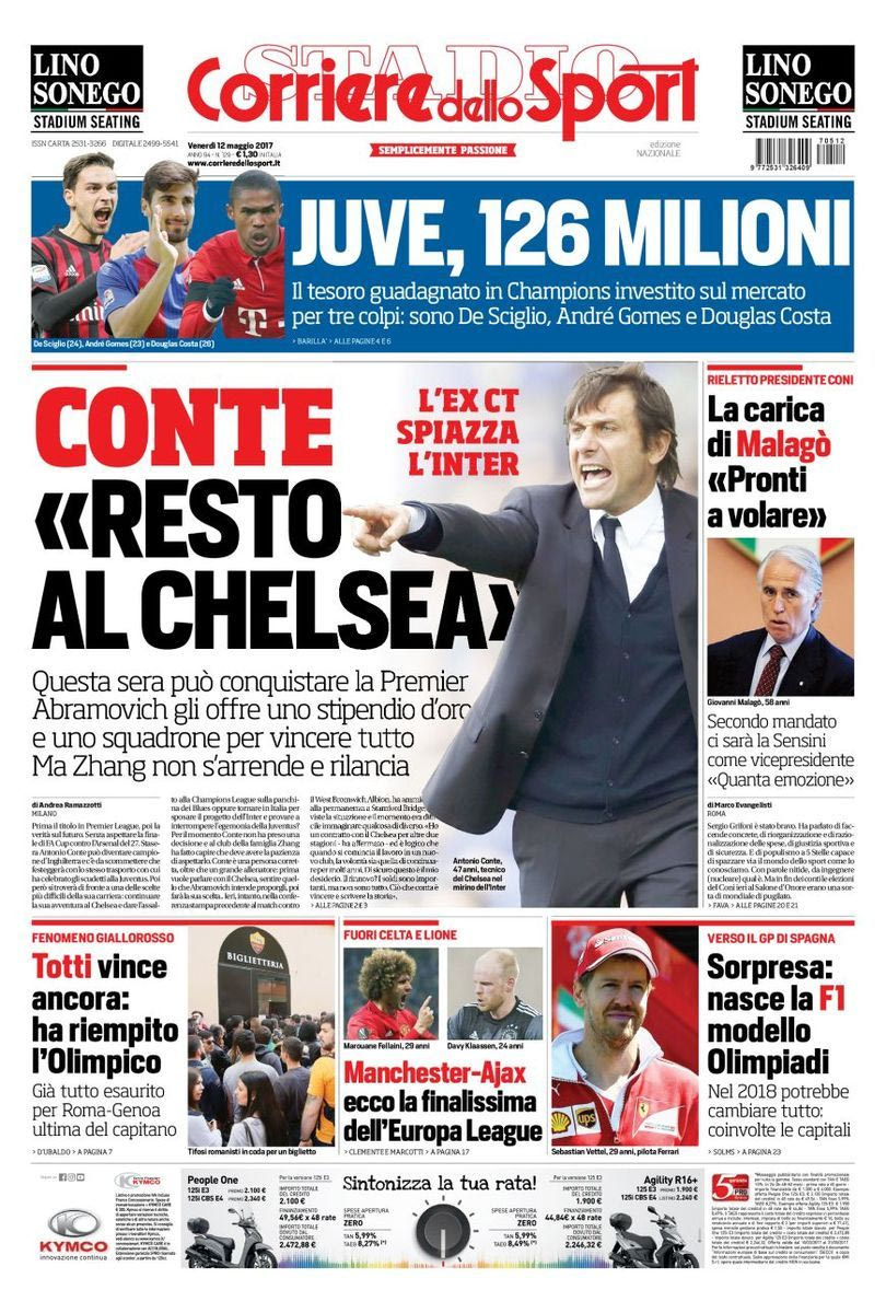 Η “Corriere dello Sport” αναφέρει στο σημερινό της πρωτοσέλιδο πως οι άνθρωποι της Ίντερ δεν εγκαταλείπουν τη μάχη για τον Αντόνιο Κόντε (πρώτος στόχος, δεύτερος ο Σιμεόνε) και παρά το γεγονός πως ο Ιταλός είναι έτοιμος να πανηγυρίσει πρωτάθλημα με την Τσέλσι στην πρώτη του σεζόν στην Premier League θα επιχειρήσουν να τον δελεάσουν προσφέροντάς του συμβόλαιο με ετήσιες αποδοχές 15.000.000 ευρώ.