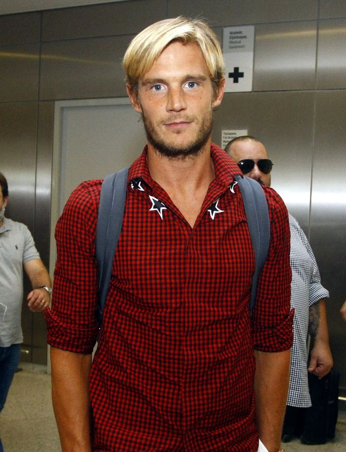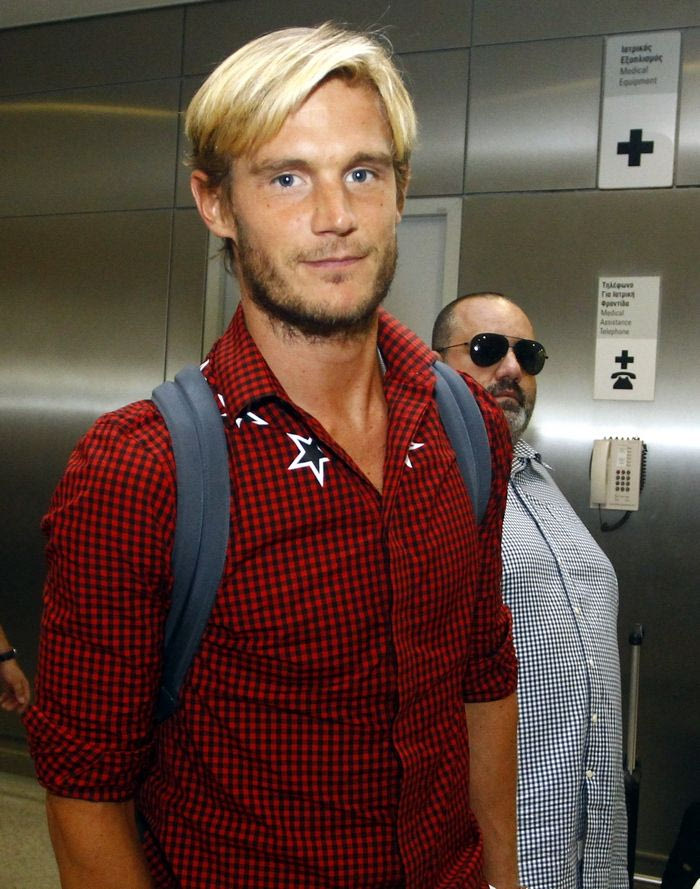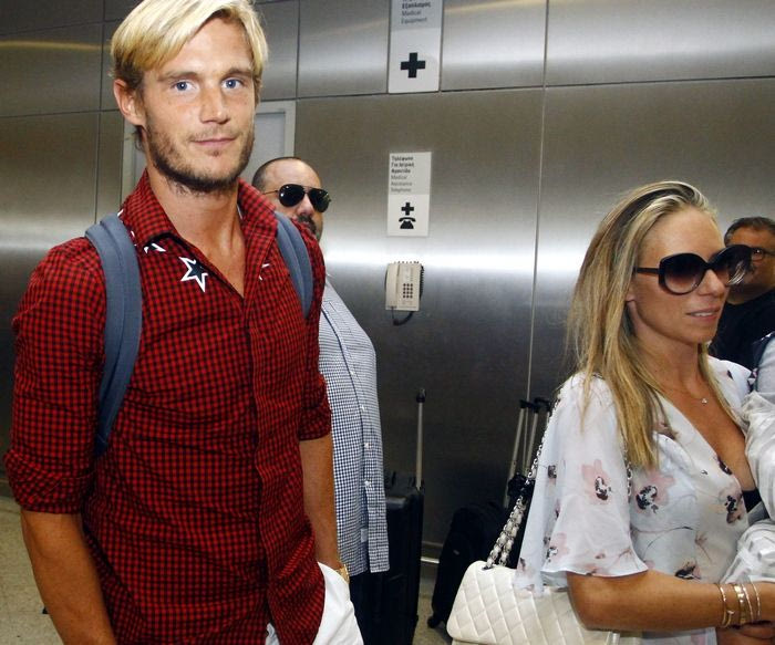 Δεν θα μείνει όμως μόνος του στην Αθήνα, αφού μαζί του ήρθε και η πανέμορφη ξανθιά σύντροφός του, η οποία κρατούσε στην αγκαλιά της και το κοριτσάκι τους.