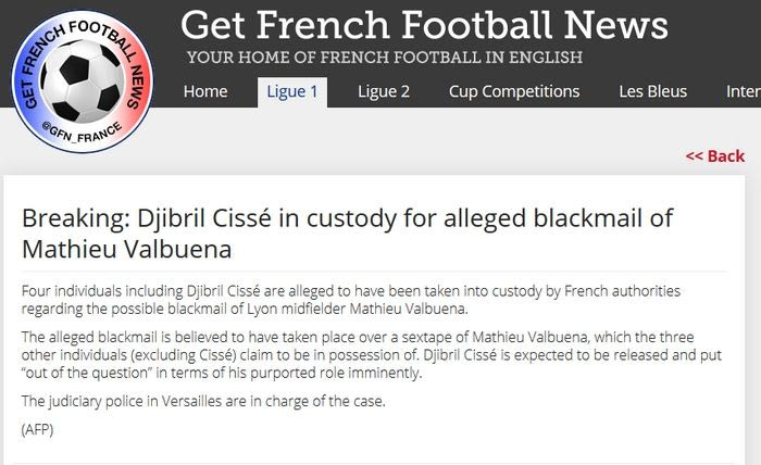 Σύμφωνα με το γαλλικό πρακτορείο ειδήσεων, ο πρώην άσος του Παναθηναϊκού προσπάθησε να εκβιάσει τον Ματιέ Βαλμπουενά.