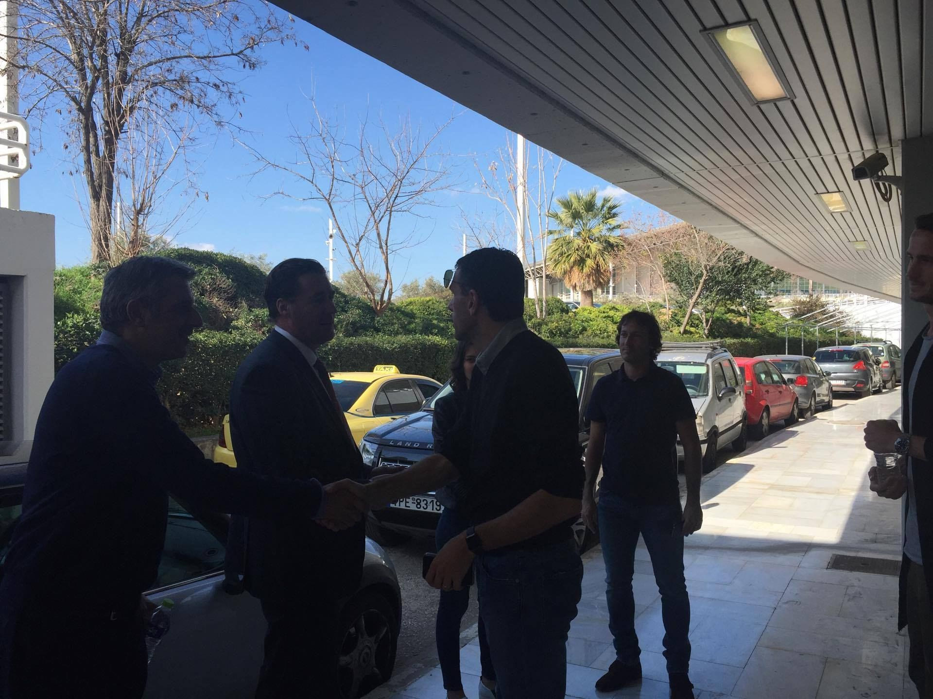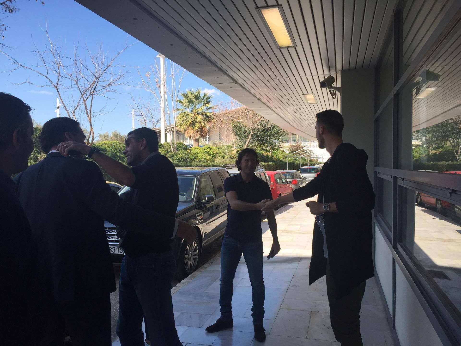 Στα γραφεία της “Ένωσης” στο ΟΑΚΑ βρέθηκε κι ο Γκουστάβο Πογέτ, ο οποίος είχε μία πρώτη γνωριμία με τους δύο ποδοσφαιριστές.