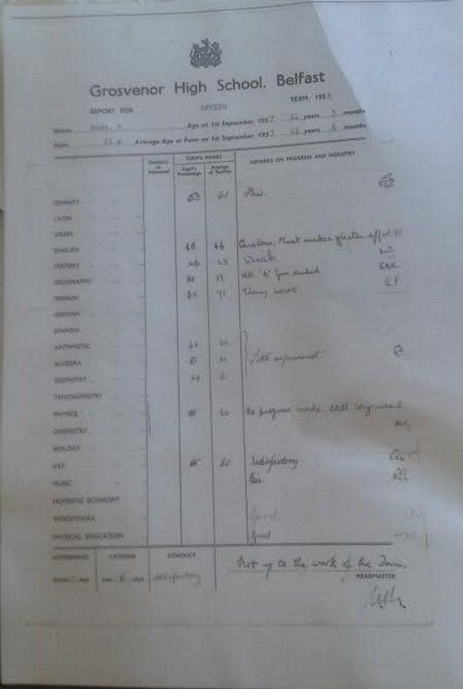Δύσκολο να διακρίνει κανείς από μακριά. Οι αριθμοί που αντικρίσαμε όταν πλησιάσαμε, μας μπέρδεψαν ακόμα περισσότερο. “Είναι οι βαθμοί του Τζορτζ στην πρώτη τάξη του γυμνασίου. Εξαιρετικοί. Αλλά δεν συνέχισε σ’ αυτό το σχολείο. Ξέρετε γιατί; Διότι ειδικευόταν στο ράγκμπι. Αυτός ήθελε να παίξει ποδόσφαιρο και έτσι δεν είχε πρόβλημα να πάει σε άλλο, για λιγότερο ικανά, στα μαθήματα, παιδιά. Δεν μπορούσε καν να διανοηθεί ότι δεν θα έπαιζε ποδόσφαιρο μαζί με τους φίλους του από το δημοτικό σχολείο”.