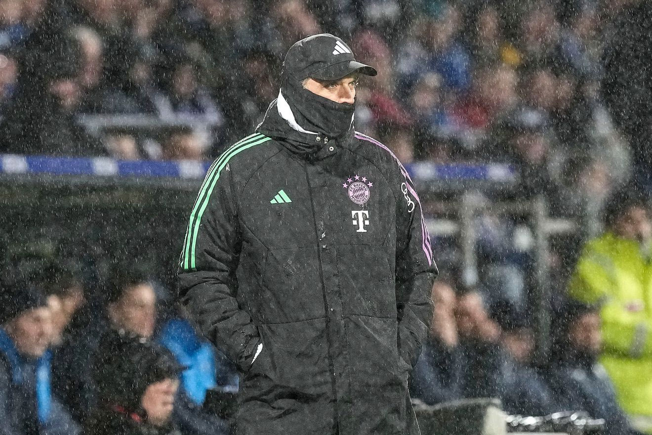 Bayern's head coach Thomas Tuchel stands in the heavy rain during the German Bundesliga soccer match between VfL Bochum and FC Bayern Munich in Bochum, Germany, Sunday, Feb. 18, 2024. (AP Photo/Martin Meissner) AP