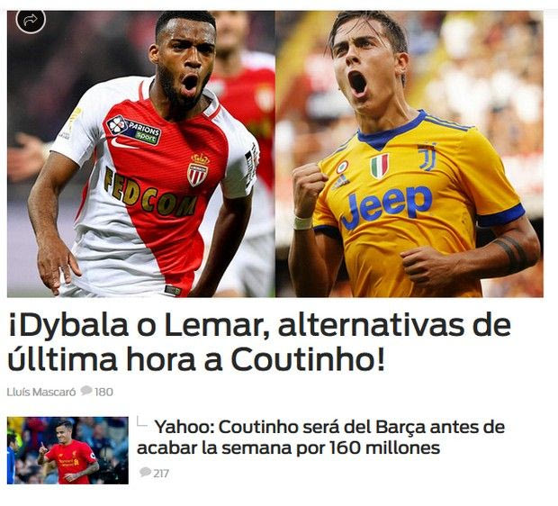 Σε περίπτωση πάντως που στραβώσει το deal (η “Μπάρσα” ξεκίνησε την… πολιορκία του Κοουτίνιο κάνοντας πρόταση 80.000.000 ευρώ) υπάρχουν και εναλλακτικές λύσεις, που τις αποκαλύπτουν τα δύο μεγάλα καταλανικά αθλητικά μέσα.