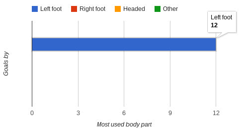 Πέρα από το γεγονός ότι είναι ένας πραγματικός “δολοφόνος” για τις αντίπαλες άμυνες εντός περιοχής, έχει πλουραλισμό στον τρόπο που σκοράρει, αφού έχει πετύχει γκολ με το δεξί πόδι, το αριστερό και με το κεφάλι.
