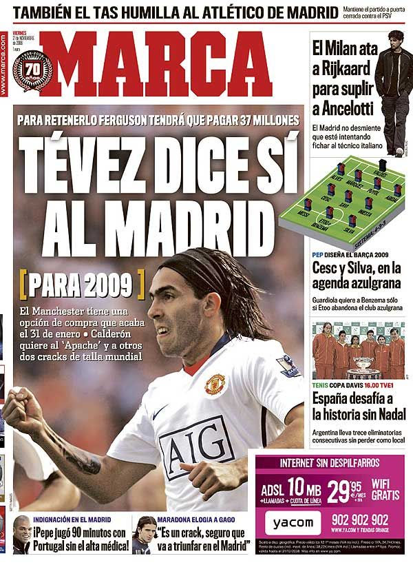 Πιθανότατα ο Βάσκος επιθετικός να προοριζόταν για να καλύψει το κενό που άφησε ο Κάρλος Τέβες. Πολύ πριν διχάσει το Μάντσεστερ, το 2009, ο επιθετικός της Γιουνάιτεντ “είχε πει το ‘ναι’ στη Ρεάλ”. Μόνο ένας άνθρωπος κατάφερε να πέσει πιο έξω από την εφημερίδα. Στο κάτω μέρος του πρωτοσέλιδου, ο Ντιέγο Μαραντόνα δηλώνει για τον νεοαποκτηθέντα Φερνάντο Γκάγκο: “Είναι μία τρομερή μεταγραφή, που θα θριαμβεύσει στη Ρεάλ”.
