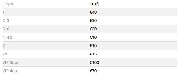 Αναλυτικά, οι τιμές των εισιτηρίων είναι οι εξής: