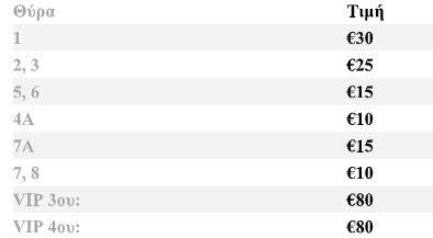 Οι τιμές των εισιτηρίων είναι οι εξής :