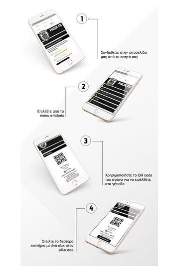 Όσοι φίλαθλοι έχουν προμηθευτεί εισιτήριο μέσω internet και έχουν επιλέξει την παραλαβή «print@home», μπορούν είτε να εκτυπώσουν το εισιτήριό τους σε εκτυπωτή είτε να εισέλθουν στο γήπεδο με το κινητό τους με τη χρήση της νέας λειτουργικότητας QR code.