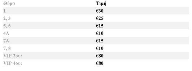 Οι τιμές των εισιτηρίων είναι οι εξής: