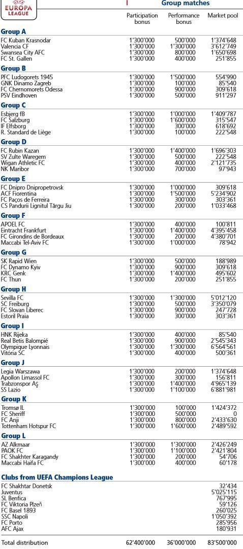 Σύμφωνα με τα οικονομικά στοιχεία που έδωσε η UEFA στη δημοσιότητα για την συμμετοχή των ομάδων στην περσινή διοργάνωση του Europa League, ο ΠΑΟΚ εισέπραξε περισσότερα από 5 εκατομμύρια ευρώ. Διαβάστε αναλυτικά τα στοιχεία.