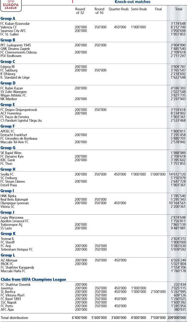 Η Σεβίλλη που κατέκτησε τον τίτλο εισέπραξε συνολικά 14.612.120 ευρώ, ενώ σε διψήφιο νούμερο έφτασαν και τα έσοδα της Λιόν, η οποία έβαλε στα ταμεία της 10.164.561 ευρώ.