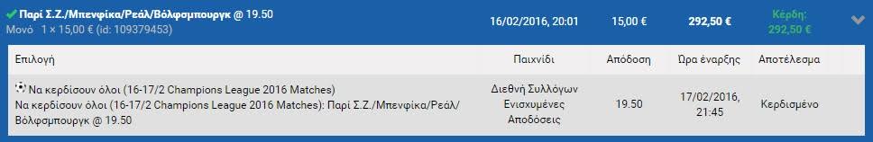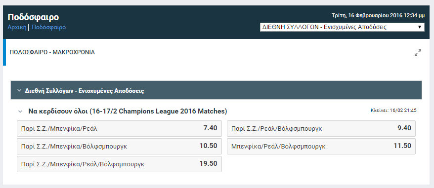 Μαζί όμως με τις Παρί, Μπενφίκα, Ρεάλ και Βόλφσμπουργκ βγήκαν… κερδισμένοι και οι παίκτες του Stoiximan.gr, οι οποίοι αποφάσισαν να ποντάρουν στις παραπάνω ομάδες, επιλέγοντας την αγορά με τις ενισχυμένες αποδόσεις.