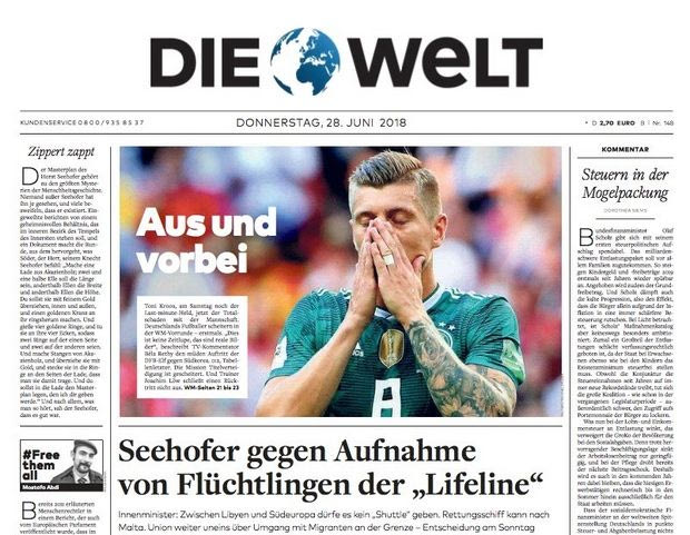 Ο οδυνηρός αποκλεισμός της Γερμανίας απ’ την συνέχεια του Παγκοσμίου Κυπέλλου, δεν θα μπορούσε παρά να αποτελεί πρώτο θέμα συζήτησης στα Μέσα της χώρας.