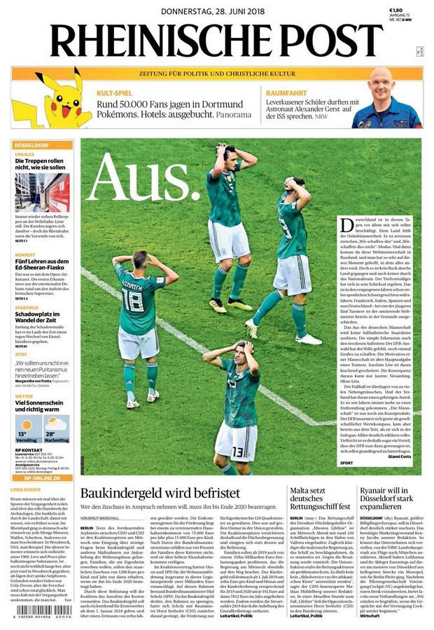Απ’ την μεριά της η ” Rheinische Post” αρκέστηκε σε μία και μόνο λέξη: “Aus” , που σημαίνει “Εξω” .