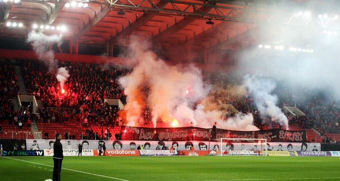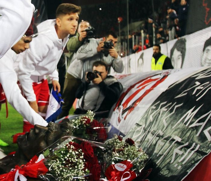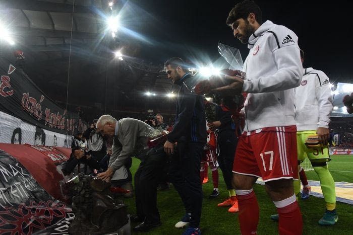 Πριν τη σέντρα του αγώνα κόντρα στον Ατρόμητο όλη η οικογένεια του Ολυμπιακού κατέθεσε στεφάνια και τίμησε τα θύματα της τραγωδίας της Θύρας 7.
