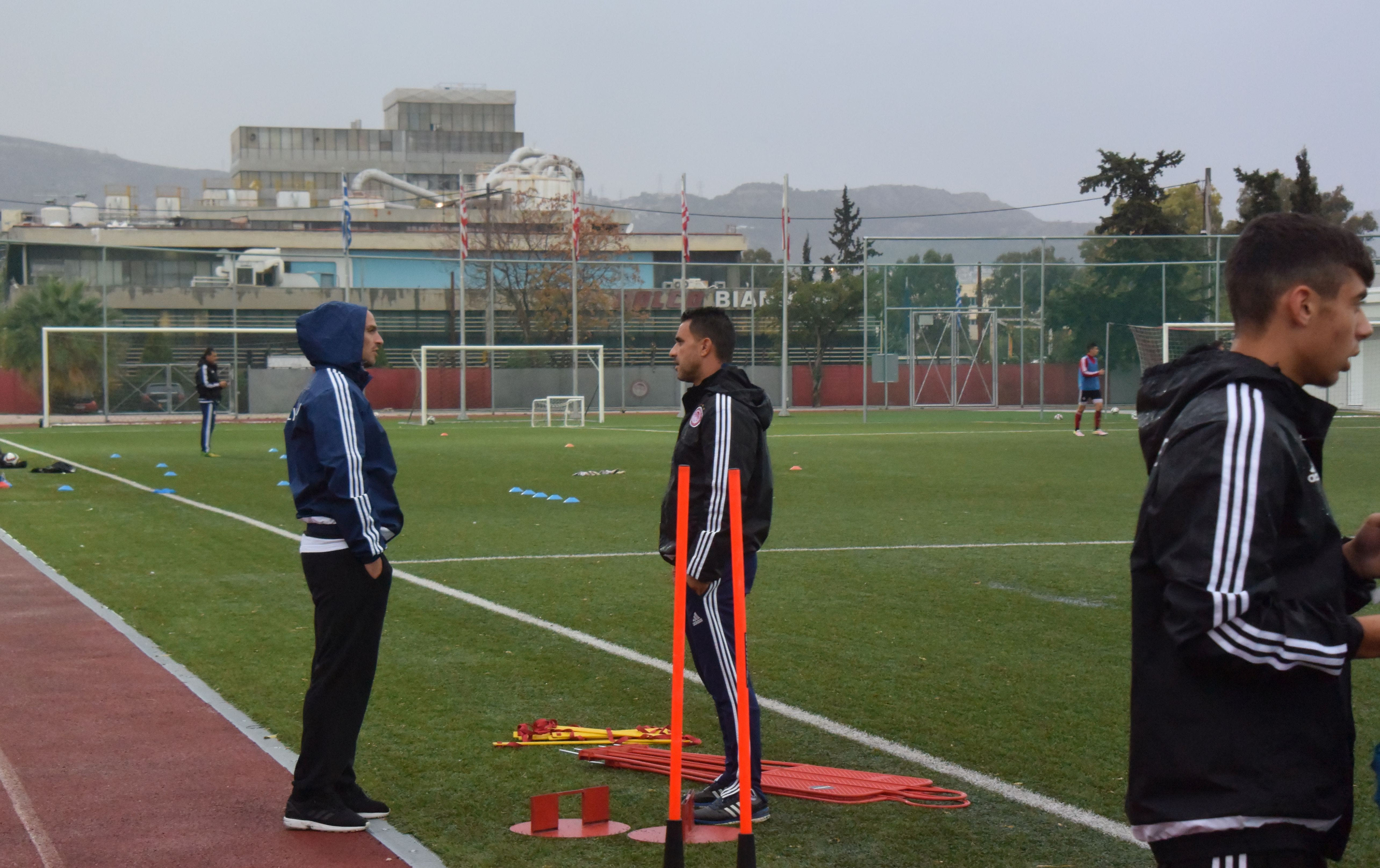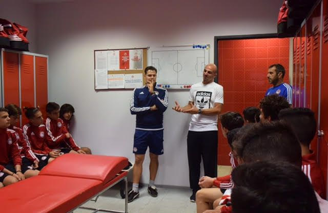 Η παρουσία του Καμπιάσο στην προπόνηση σκόρπισε ενθουσιασμό τα “ερυθρόλευκα” ταλέντα, που κράτησαν κάθε του λέξη από τα λόγια του.