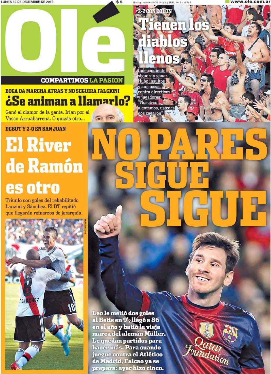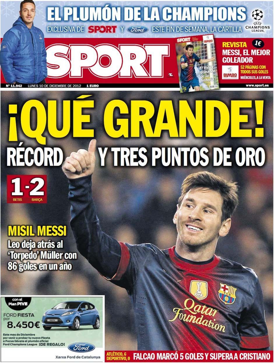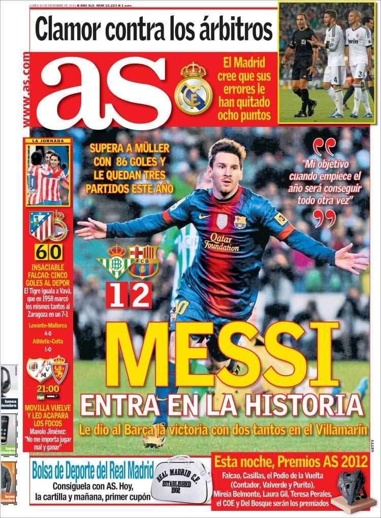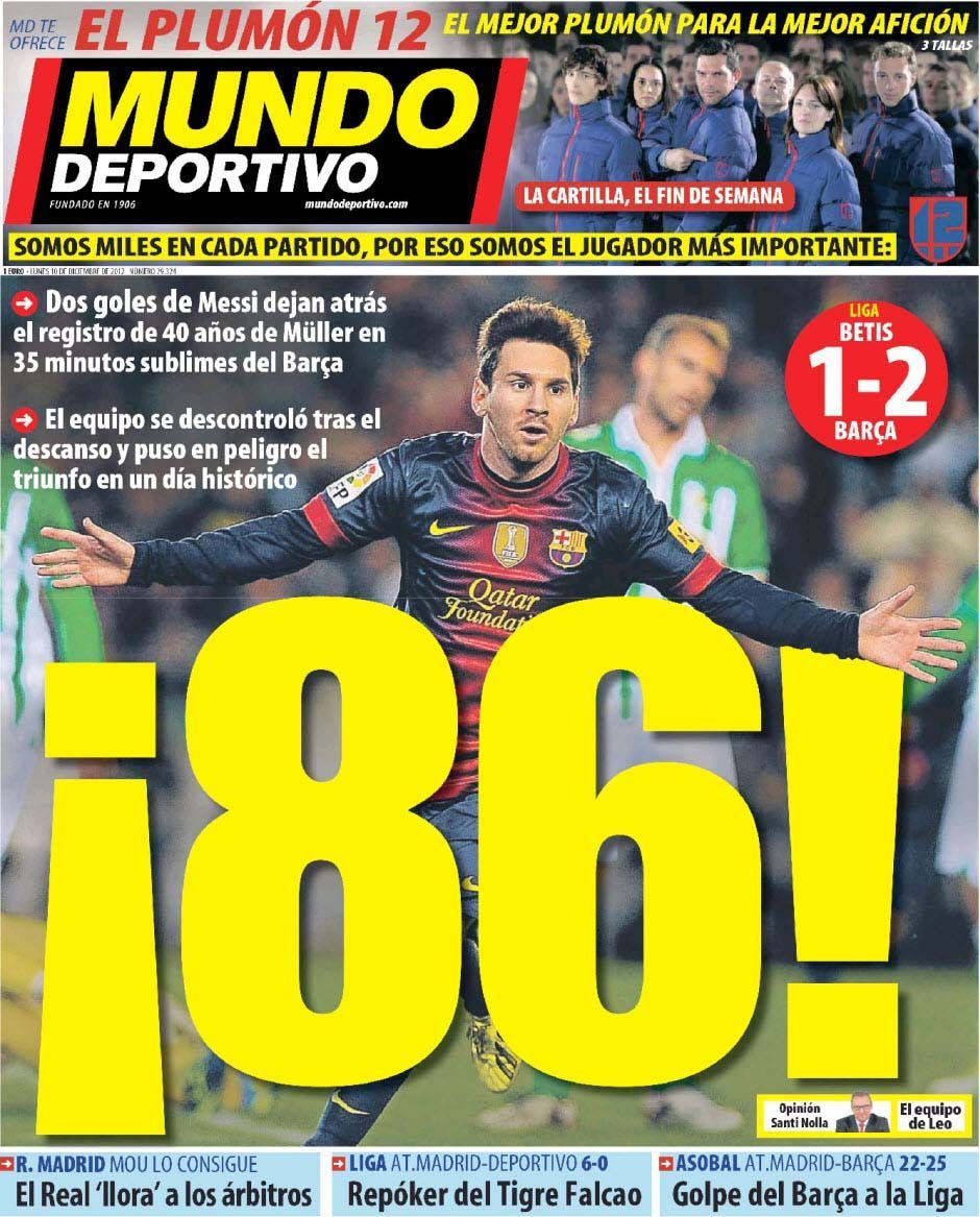 Το πρωί της Δευτέρας (10/12) όλα άλλαξαν, αλλά… κεκαλυμμένα. Το πρωτοσέλιδο της εφημερίδας, αλλά και η ιστοσελίδα, αναφέρει ότι ο Μέσι έσπασε το ρεκόρ, αλλά δεν γράφει πουθενά τον αριθμό 86, παρά μόνο το 85 με έντονα γράμματα, ήτοι τα γκολ του Γερμανού “μπόμπερ” ή αυτά που… έδινε στο Μέσι η “Marca”.