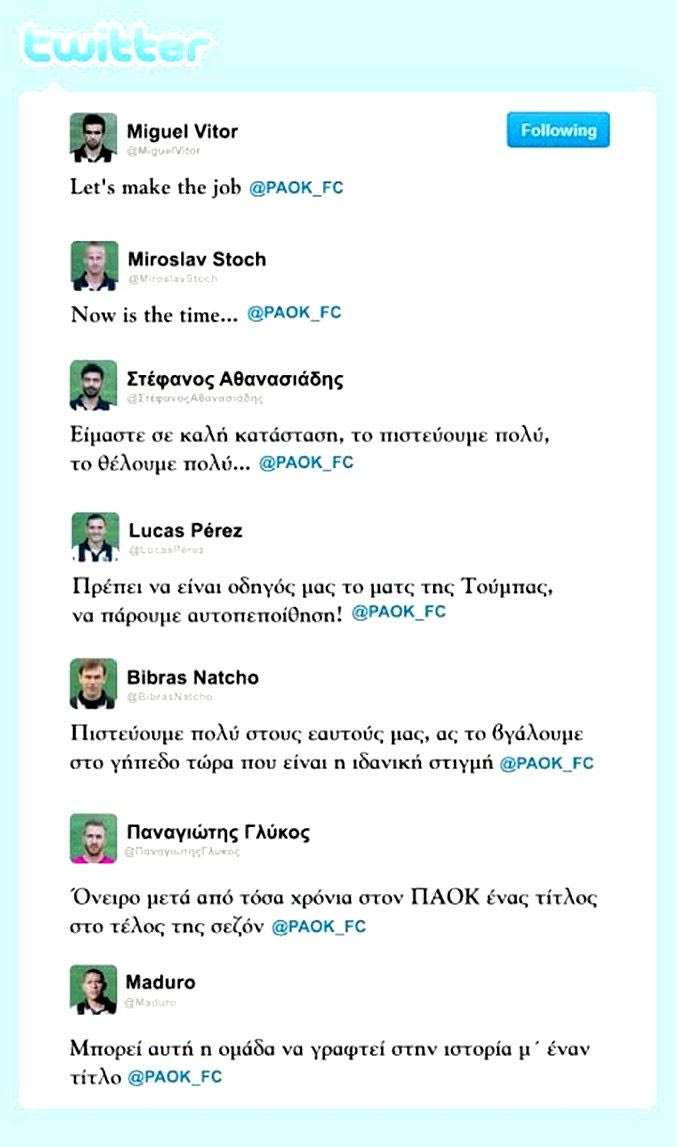 Τα tweets των παικτών του ΠΑΟΚ για τη μεγάλη μάχη του Κυπέλλου