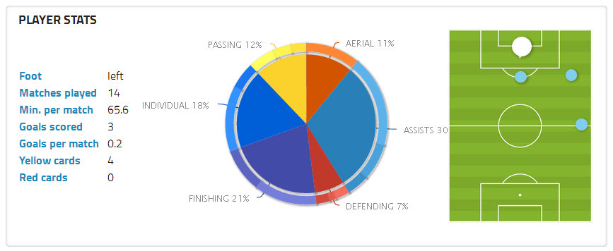 Στο “ρεπερτόριό” του από τις αρχές του 2017 μέχρι τώρα, το 30% των πεπραγμένων του εντός γηπέδου με την φανέλα της Κολόν είναι οι τελικές πάσες, ενώ ακολουθούν τα τελειώματα φάσεων σε ποσοστό 21% και οι ατομικές ενέργειες σε ποσοστό 18%. Η συγκεκριμένη ποσοστιαία κατανομή δείχνει και το…τρόπο σκέψης και δράσης του Περέιρα ενός γηπέδου, καθώς αυτή είναι και η αναμενόμενη κατανομή δράσης ενός παίκτη που έχει τη ταμπέλα του δεύτερου επιθετικού.