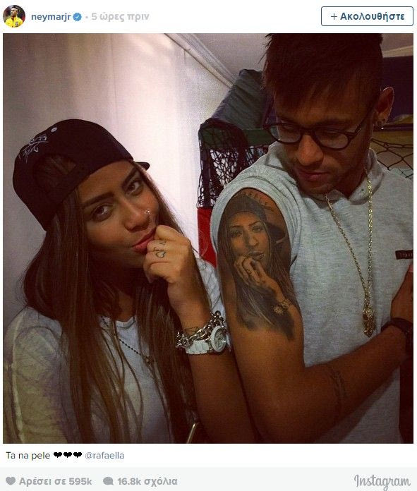 Ο Βραζιλιάνος ανέβασε στο κοινωνικό δίκτυο μια φωτογραφία με τον ίδιο και να παρουσιάζει το καινούργιο του τατουάζ. Μια προσωπογραφία της αδερφής του, Ραφαέλα Μπεκράν.