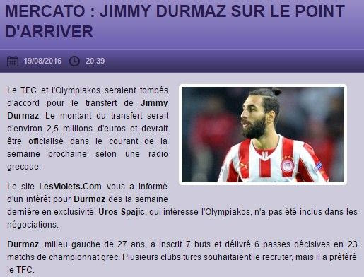 Ο Ντουρμάζ επέστρεψε με την αποστολή τα ξημερώματα της Παρασκευής και αναχώρησε για τη Γαλλία λίγες ώρες αργότερα, ώστε να ολοκληρωθεί όσο πιο γρήγορα η μετακίνησή του.