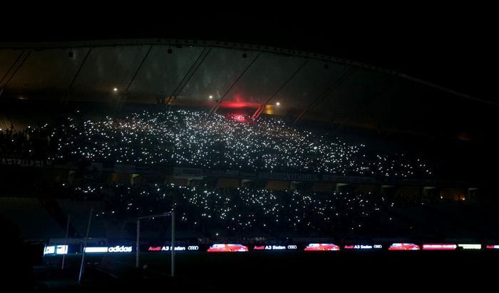 Εκείνοι που έδωσαν το “παρών” στο γήπεδο δεν πτοήθηκαν από το απρόοπτο αυτό γεγονός, βρίσκοντας τον τρόπο να δώσουν φως με τα κινητά τους. Λίγα λεπτά αργότερα το πρόβλημα αποκαταστάθηκε και το παιχνίδι συνεχίστηκε.