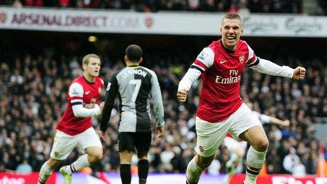 (24′ Μέρτεσακερ, 42′ Ποντόλσκι, 45+1′ Ζιρού, 60′ Καθόρλα, 91′ Γουόλκοτ / 10′ Αντεμπαγιόρ, 71′ Μπέιλ)