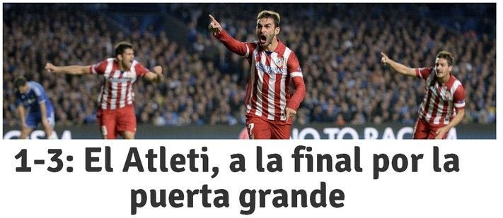 El mundo deportivo: “Η Ατλέτικο στον τελικό από τη μεγάλη πόρτα. Θα είναι στη Λισαβόνα και θα αντιμετωπίσει την Ατλέτικο Μαδρίτης”.