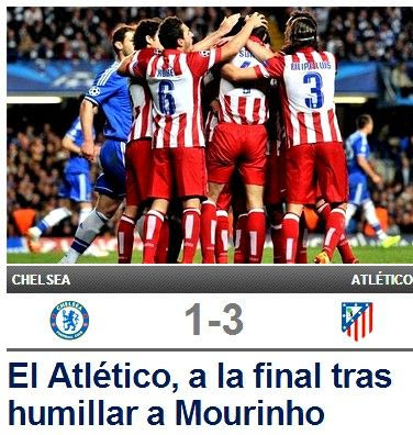 Sport: “Στον τελικό η Ατλέτικο. Απέκλεισε με 3-1 την Τσέλσι του Μουρίνιο και προκρίθηκε στη μεγάλη γιορτή μετά από 40 χρόνια”.