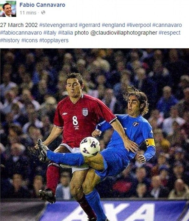 Όπως αναφέρει μεταξύ άλλων η “Daily Mail”, ο Φάμπιο Καναβάρο “ανέβασε” στον προσωπικό του λογαριασμό στο Facebook μία φωτογραφία του από τη φιλική αναμέτρηση της 27ης Μαρτίου 2002 μεταξύ της Αγγλίας και της Ιταλίας.