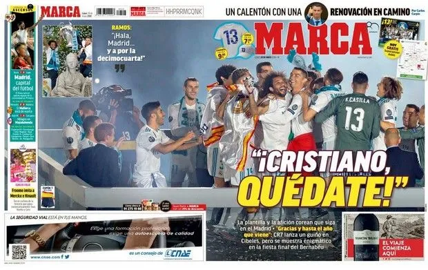Σημειώνεται πάντως ότι οι οπαδοί της Ρεάλ είναι φανατικά υπέρ της παραμονής του Ρονάλντο και το το έδειξαν στη φιέστα που έγινε στο “Μπερναμπέου” το βράδυ της Κυριακής για την κατάκτηση του Champions League, όπου του φώναζαν ρυθμικά “Ρονάλντο, μείνε”!