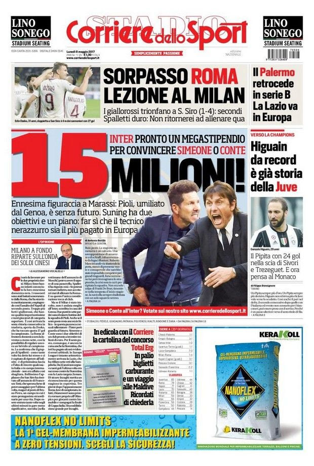 Πώς; Με το να σταματήσουν να αλλάζουν προπονητές σαν τα πουκάμισα (φέτος έχουν παρελάσει από τον πάγκο οι Ρομπέρτο Μαντσίνι, Φρανκ Ντε Μπουρ και Στέφανο Πιόλι) και να πάρουν έναν προπονητή τοπ επιπέδου, με την εφημερίδα να υποστηρίζει πως ο κύβος ερρίφθη και πως θα γίνει τεράστια προσπάθεια για να αποκτηθεί ένας εκ των Σιμεόνε ή Κόντε.
