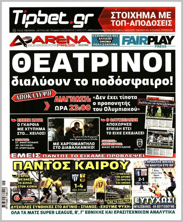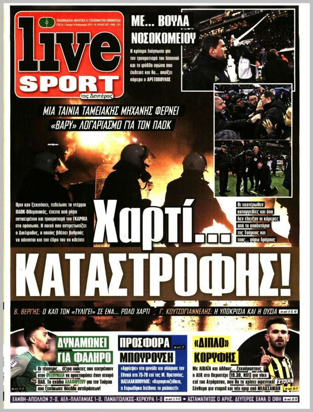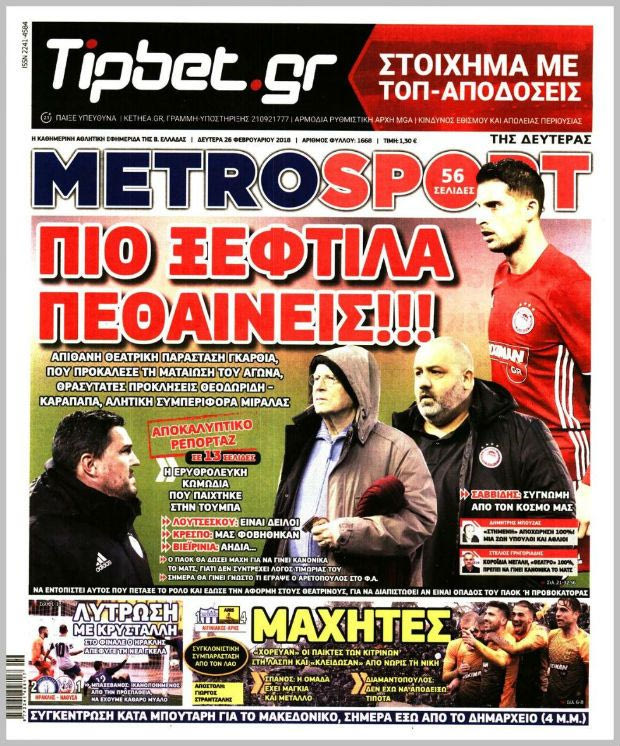 Ο αθλητικός Τύπος της ημέρας έχει πάρει... φωτιά λόγω των συμβάντων στην Τούμπα και της μη διεξαγωγής του μεγάλου ντέρμπι της 23ης αγωνιστικής μεταξύ ΠΑΟΚ - Ολυμπιακού. Το Contra.gr μάζεψε τα πρωτοσέλιδα και σας τα παρουσιάζει.
