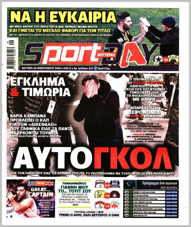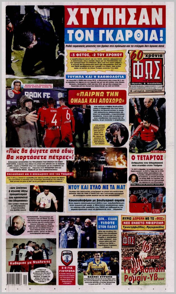 Στα πρωτοσέλιδα κυριαρχία η φωτογραφία του τραυματισμένου Γκαρθία μετά το αντικείμενο που δέχθηκε στην Τούμπα, πριν τη σέντρα στο ΠΑΟΚ – Ολυμπιακός.
