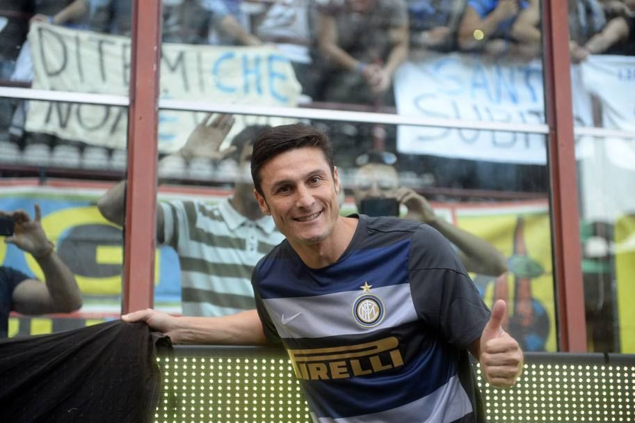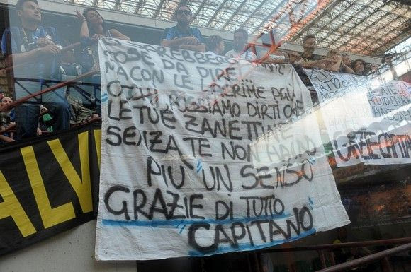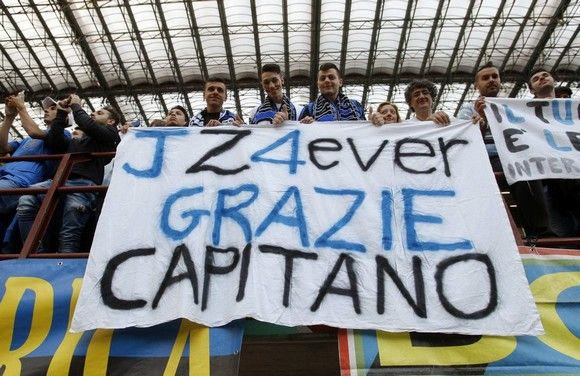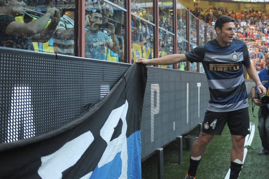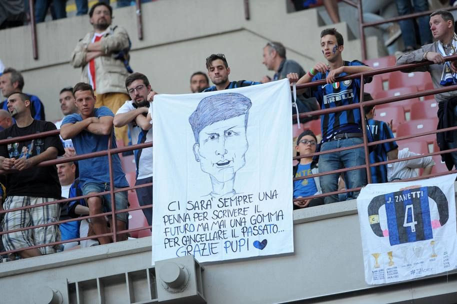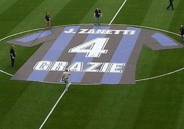 Πανό, coreo, συγκίνηση και αποθέωση από 70.000 θεατές επεφύλασσε το αποχαιρετιστήριο ματς του Χαβιέρ Σανέτι στο “Τζιουζέπε Μεάτσα” (αντίπαλος η Λάτσιο), ενώ μία μεγάλη φανέλα που έγραφε “grazie” είχε απλωθεί στη σέντρα.
