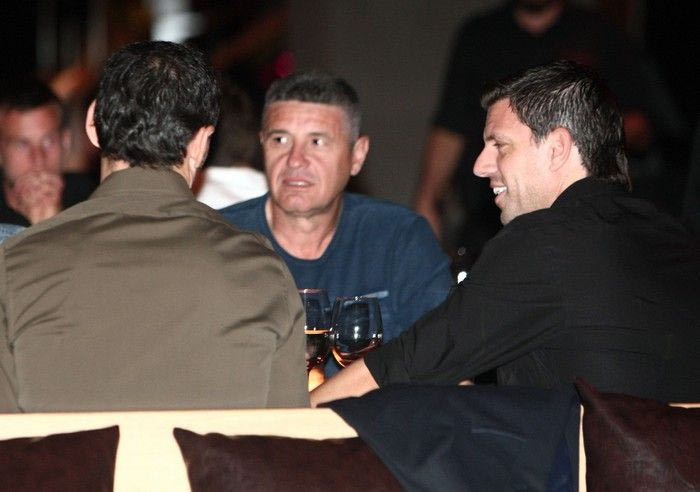 Ο πρόεδρος της “πράσινης” ΠΑΕ χαιρέτησε άπαντες δια χειραψίας και κάθισε στο τραπέζι με τους Τάκη Φύσσα, Νίκο Νταμπίζα, Δημήτρη Σαραβάκο, Γιάννη Αναστασίου, Στιβ Ρούτερ και Γιουσέφ Φος.