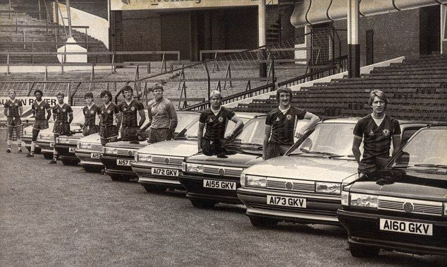 1983: Οι παίκτες της Άστον Βίλα φωτογραφίζονται με τις MG Maestro, μετά την επικύρωση της διετούς συνεργασίας με την Austin Rover