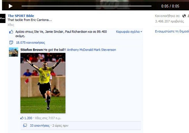 Το σχετικό βίντεο ανέβηκε στο facebook (στη σελίδα της Sport Bible) και έκανε για πλάκα 89213 like και πάνω από 18000 κοινοποιήσεις.