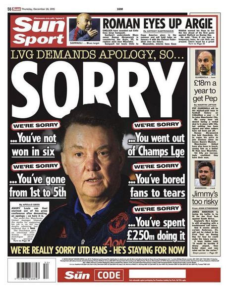 Μετά το ξέσπασμα του Λουίς φαν Χάαλ στη συνέντευξη Τύπου της Μάντσεστερ Γιουνάιτεντ, η βρετανική "Sun" ζήτησε τελικά συγγνώμη. Όχι όμως για όσα έγραψε για τον Ολλανδό. Δείτε γιατί.