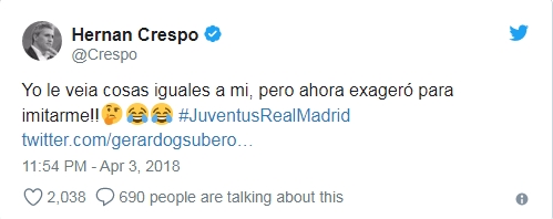 Ο Πίτερ Κράουτς… επιστράτευσε το βρετανικό του χιούμορ και έγραψε στο Twitter: “Είμαστε λίγοι αυτοί που μπορούμε να το κάνουμε αυτό”, ενώ ο “βαλδανίτο” Ερνάν Κρέσπο που είχε σκοράρει ένα παρόμοιο τέρμα το 1996 με τη φανέλα της Ρίβερ Πλέιτ απέναντι στην Σπόρτιγκ Κριστάλ είπε: ” Είδα ομοιότητες, αλλά το παράκανε μιμούμενος εμένα“.