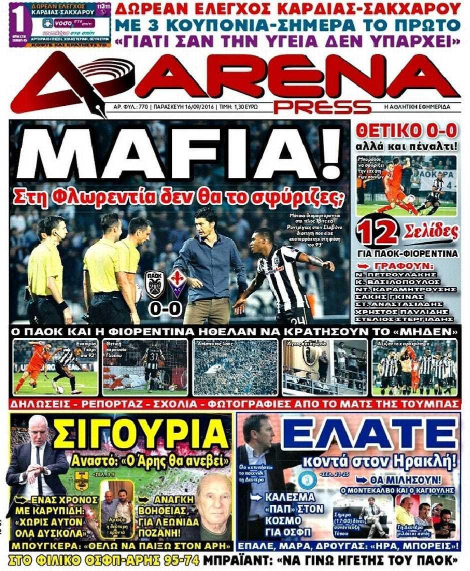 Οι παίκτες του ΠΑΟΚ διαμαρτυρήθηκαν έντονα για πέναλτι που δεν σφυρίχτηκε εις βάρος της Φιορεντίνα στις καθυστερήσεις του αγώνα των δύο ομάδων για την 1η αγωνιστική του Europa League και αυτές οι “φωνές” έγιναν… κραυγή μέσα από την “Arena”, με την αθλητική εφημερίδα της Θεσσαλονίκης να κυκλοφορεί την Παρασκευή με τον εξής καυστικό τίτλο: