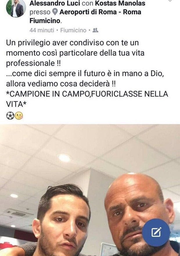 Έχει μάλιστα διαρρεύσει μέσω Facebook σχετική φωτογραφία καθώς τον συνάντησε ο Αλεσάντρο Λούτσι, αθλητικός διευθυντής της ομάδας Lupa Roma, και φωτογραφήθηκαν μαζί, κάνοντας μάλιστα το εξής σχόλιο για τον Μανωλά: