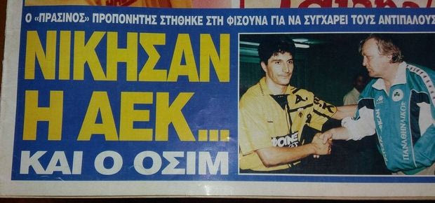 Η συγκεκριμένη ενέργεια έγινε πρωτοσέλιδος τίτλος από το περιοδικό “ΕΘΝΟΣΠΟΡ” (αθλητικό ένθετο που έβγαινε μαζί με το “Εθνος” κάθε Δευτέρα και έγραψε τη δική του ιστορία στο χώρο του αθλητικού Τύπου). Στις 13 Σεπτεμβρίου του 1993 το εν λόγω περιοδικό κυκλοφόρησε με τον εξής χαρακτηριστικό τίτλο: “Νίκησαν η ΑΕΚ και ο Οσιμ. Ο πράσινος προπονητής στήθηκε στη φυσούνα για να συγχαρεί τους αντιπάλους!”