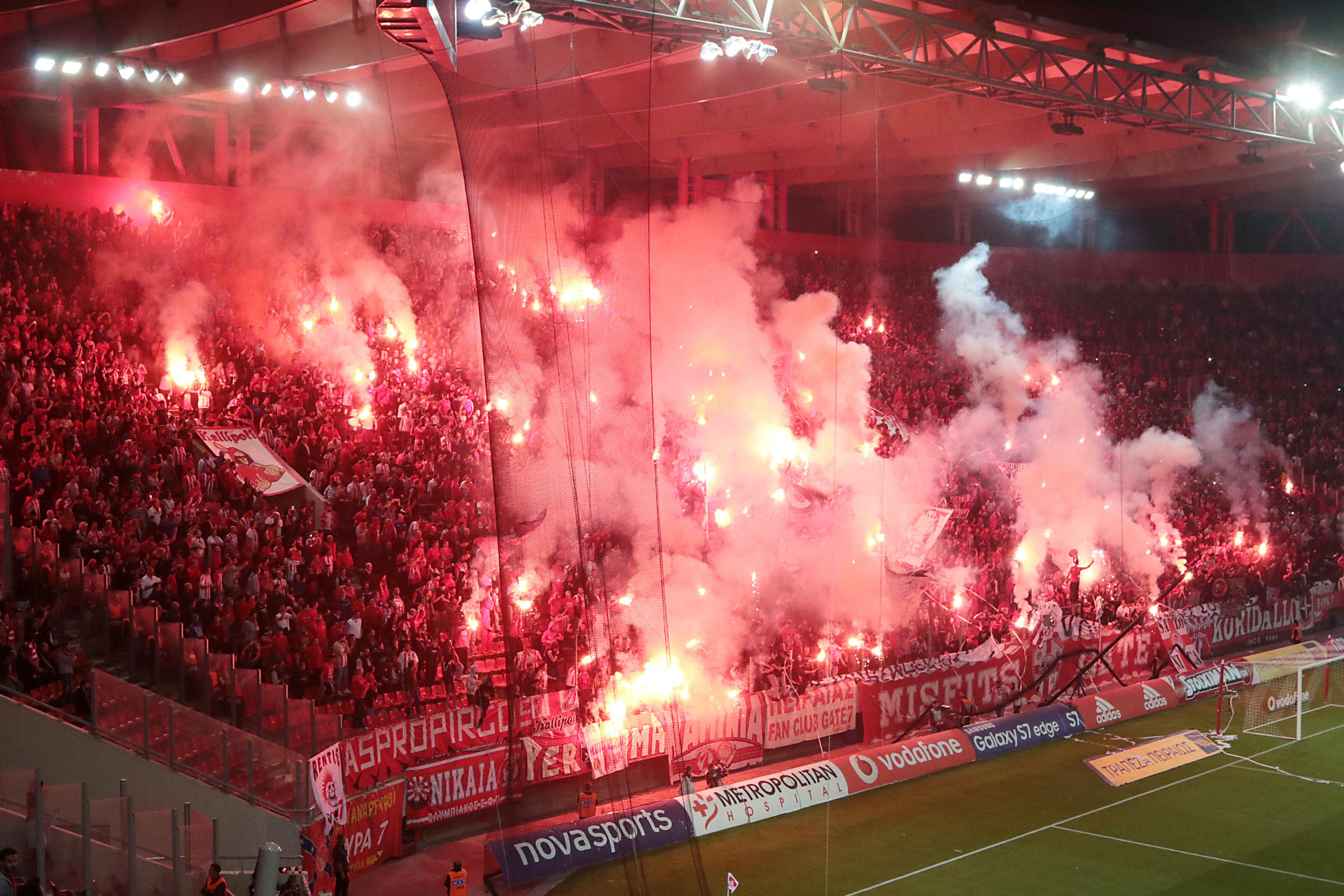 Δείτε όσα έγιναν στις εξέδρες και τον αγωνιστικό χώρο του "Καραϊσκάκης" πριν την έναρξη του ντέρμπι Ολυμπιακός-ΠΑΟΚ.