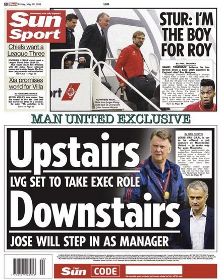 Η εφημερίδα "SUN" αποκαλύπτει στο φύλλο της Παρασκευής (20/5) ότι η Γιουνάιτεντ εξετάζει το ενδεχόμενο να... αναβαθμίσει τον Λουίς Φαν Χάαλ, προκειμένου να ανοίξει ο δρόμος για την πρόσληψη του Ζοσέ Μουρίνιο.