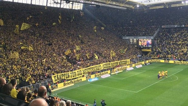 Όλα θα τελείωναν ιδανικά εδώ, αν μετά από την αγχώδη νίκη της Ντόρτμουντ με 2-0 χάρη σε δύο γκολ του Πάκο Αλκάθερ στις καθυστερήσεις, δεν ερχόταν ο πανηγυρισμός στην κερκίδα. Ο πανηγυρισμός κατά τον οποίο σηκώθηκε και πανό που έγραφε “Παλέψτε για το πρωτάθλημα. Νικήστε την Μπάγερν Μονάχου”. Αλλά όχι με το “νικήστε”…
