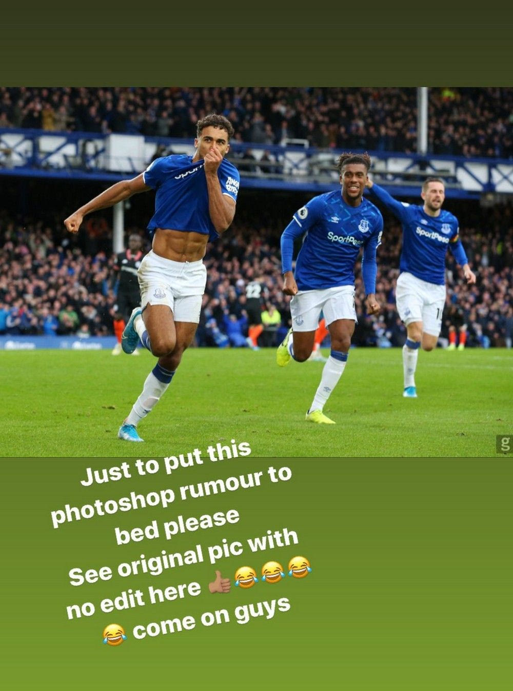 Ο Κάλβερτ-Λιούιν σκόραρε λίγο μετά την έναρξη του δεύτερου ημιχρόνου και λίγο πριν από τη λήξη του, διαμορφώνοντας το τελικό αποτέλεσμα. Στον πανηγυρισμό του το πάθος ξεχείλιζε. Μαζί ξεχείλιζαν και οι six pack κοιλιακοί του. Που έγιναν αυτομάτως viral για το αν ήταν όντως αληθινοί ή υπέστησαν επεξεργασία πριν αναρτηθούν στον προσωπικό λογαριασμό του στο instagram. Οι αμφισβητίες, τα ‘τσακάλια’ του photoshopping, ανακάλυψαν πολύ γρήγορα τις τρανταχτές διαφορές της ‘γνήσιας’ εκδοχής της φωτογραφίας με την υποτιθέμενα ‘παραποιημένη’.