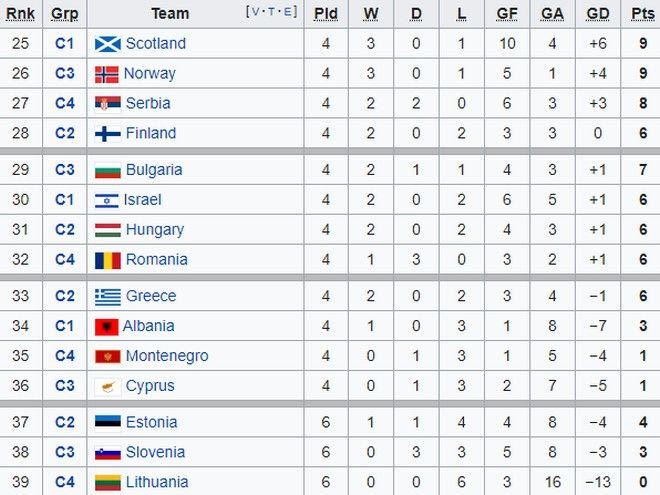 Η Ελλάδα τερμάτισε στην 3η θέση του 2ου ομίλου της League C στο Nations League 2018-2019. Αυτό τη φέρνει στην 33η θέση του συνολικού ranking ή στην 9η του ranking της League C. Για να καταλάβει κάποια από τις 4 θέσεις που οδηγούν στα playoffs της League C, θα πρέπει να φύγουν από τον δρόμο της 5 από τις 8 εθνικές ομάδες που βρίσκονται πάνω της στην κατάταξη. Αυτές είναι (κατά σειρά) οι Σκωτία, Νορβηγία, Σερβία, Φινλανδία, Βουλγαρία, Ισραήλ, Ουγγαρία και Ρουμανία.